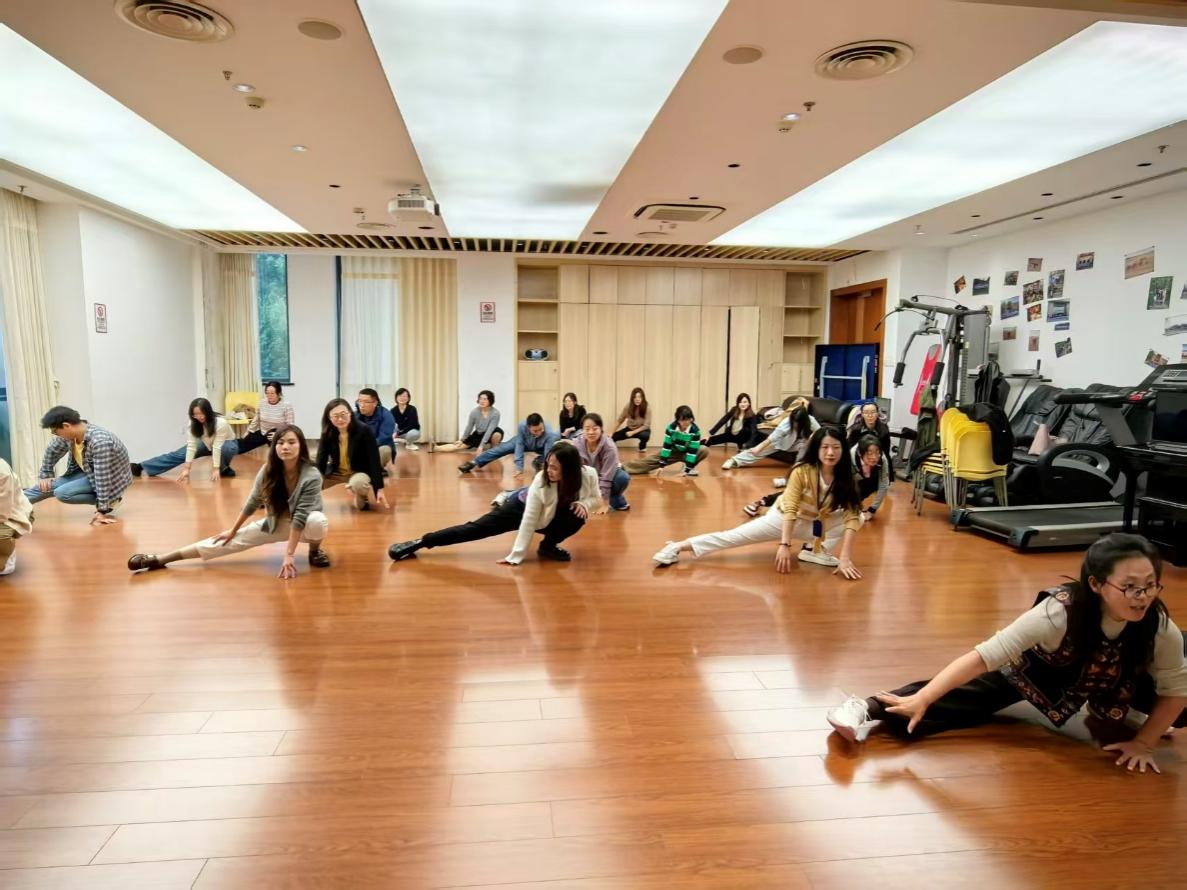 在欢快而富有节奏的音乐中,平日里在书斋中沉思、在讲台上挥洒的教授学者们,暂时放下了繁重的科研任务与教学案头工作,跟随示范,尽情地伸展、跳跃、摆动。那一张张或因伏案钻研、或因持续授课而略显疲惫的面容,在运动中重新焕发出光彩。每一次有力的出拳,每一次轻盈的弹跳,都是对日常静态劳作所致肌肉紧张、气血循环减缓的有效对抗。