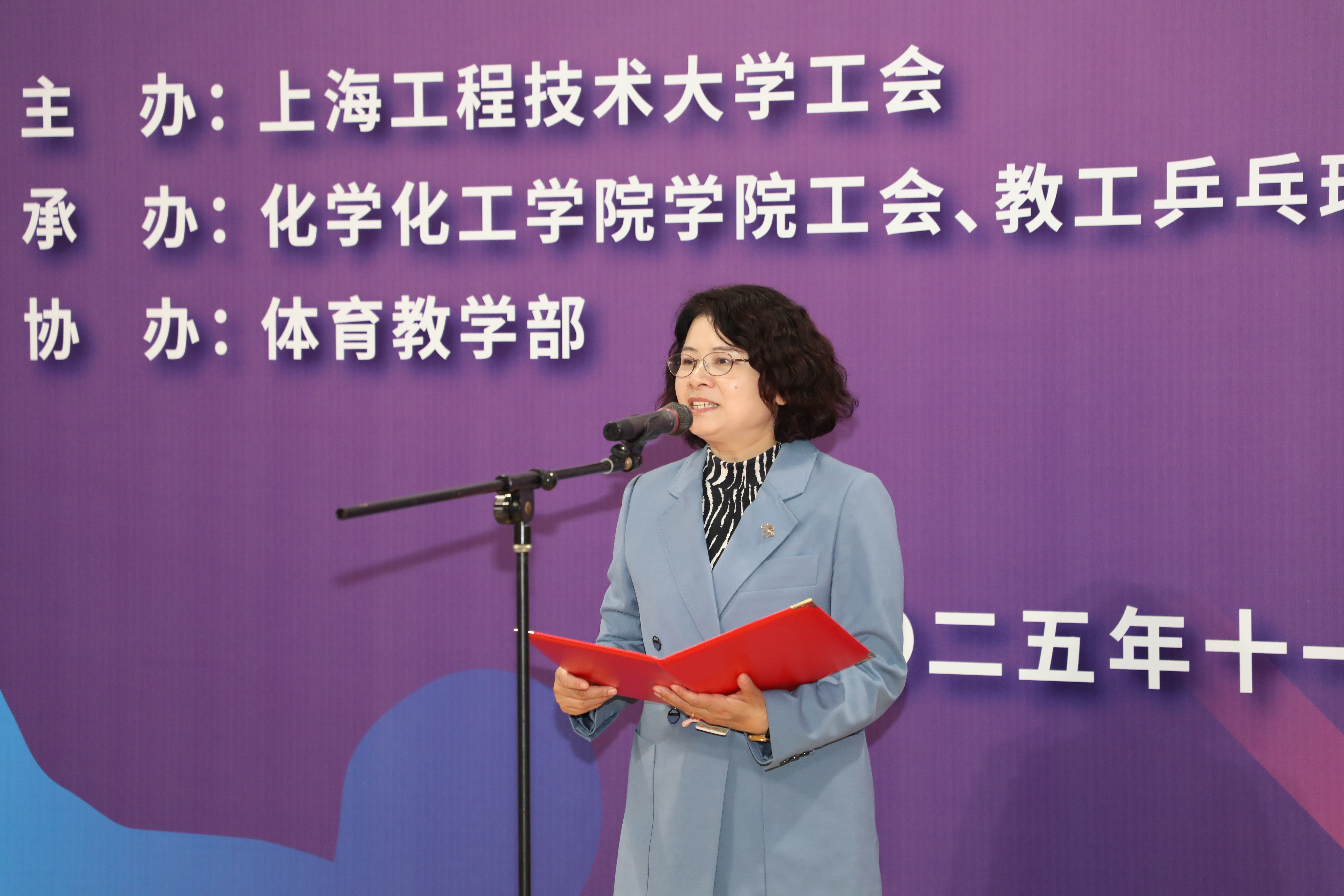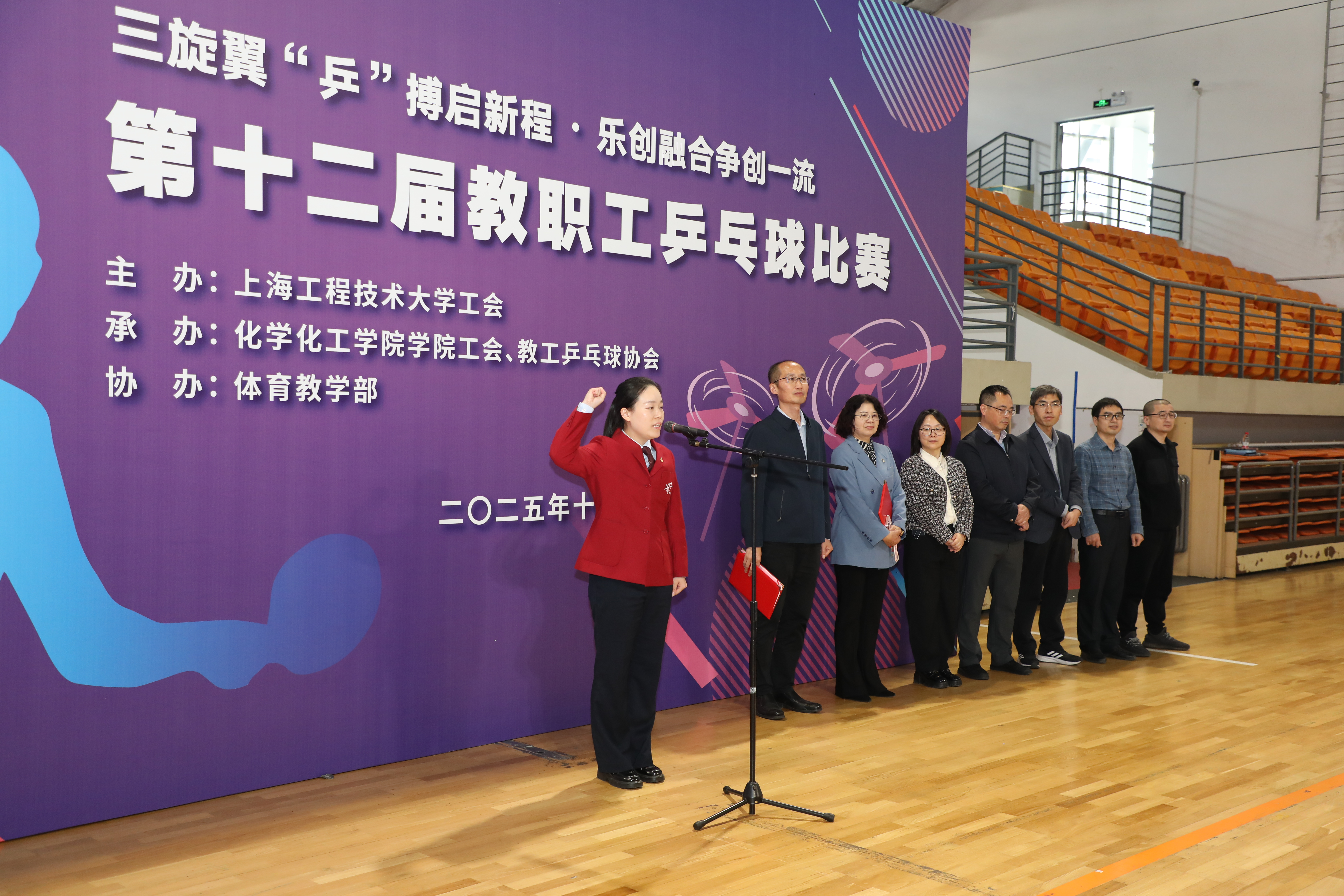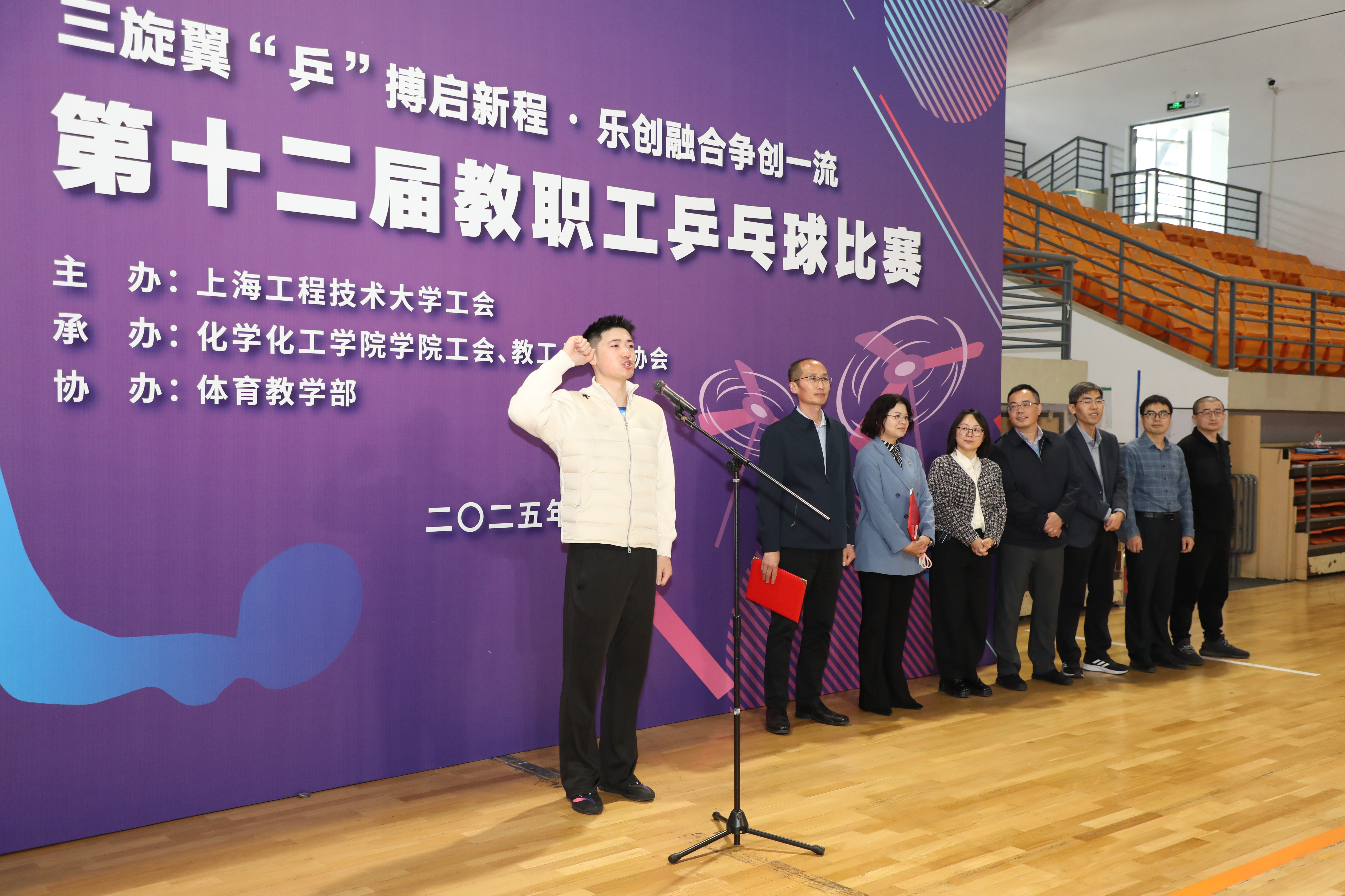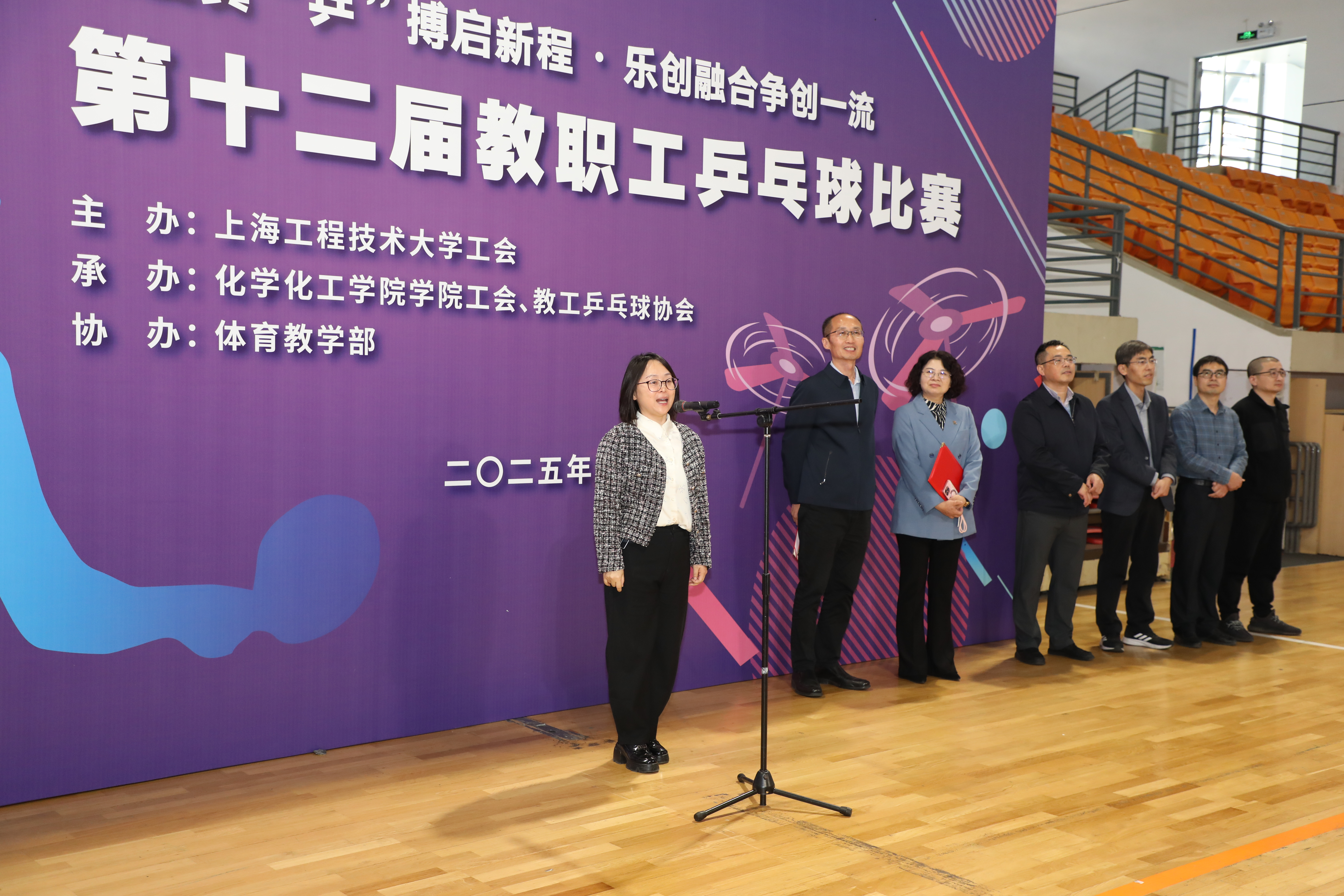 11月14日下午,备受期待的学校第十二届教职工乒乓球比赛在松江校区体育馆激情开拍。本次赛事由校工会主办,化学化工学院、教职工乒乓球协会承办,校体育部协办,吸引了来自全校60余名教职工运动员同场竞技,共同奉献了一场精彩纷呈、友谊与竞技并存的文化体育盛宴。校党委副书记、校工会主席朱晓青,校工会常务副主席、妇工委常务副主任李霞,化学化工学院院长李亚、体育部党委书记李杨、体育部主任张建新参加了开幕式。开幕式由化学化工学院党委书记宋勤健主持。