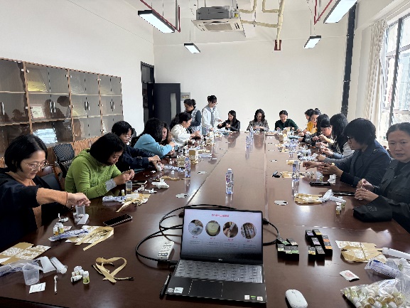 活动现场气氛温馨而热烈,老师们在专业指导下,亲手调配天然植物精华与香氛原料,制作出一瓶瓶专属冬日润泽的护手霜。从选香、调香到灌装,每一步都充满了创意与乐趣,大家不仅学习了护手霜的制作原理,更在动手中感受到自然与生活的紧密联系。