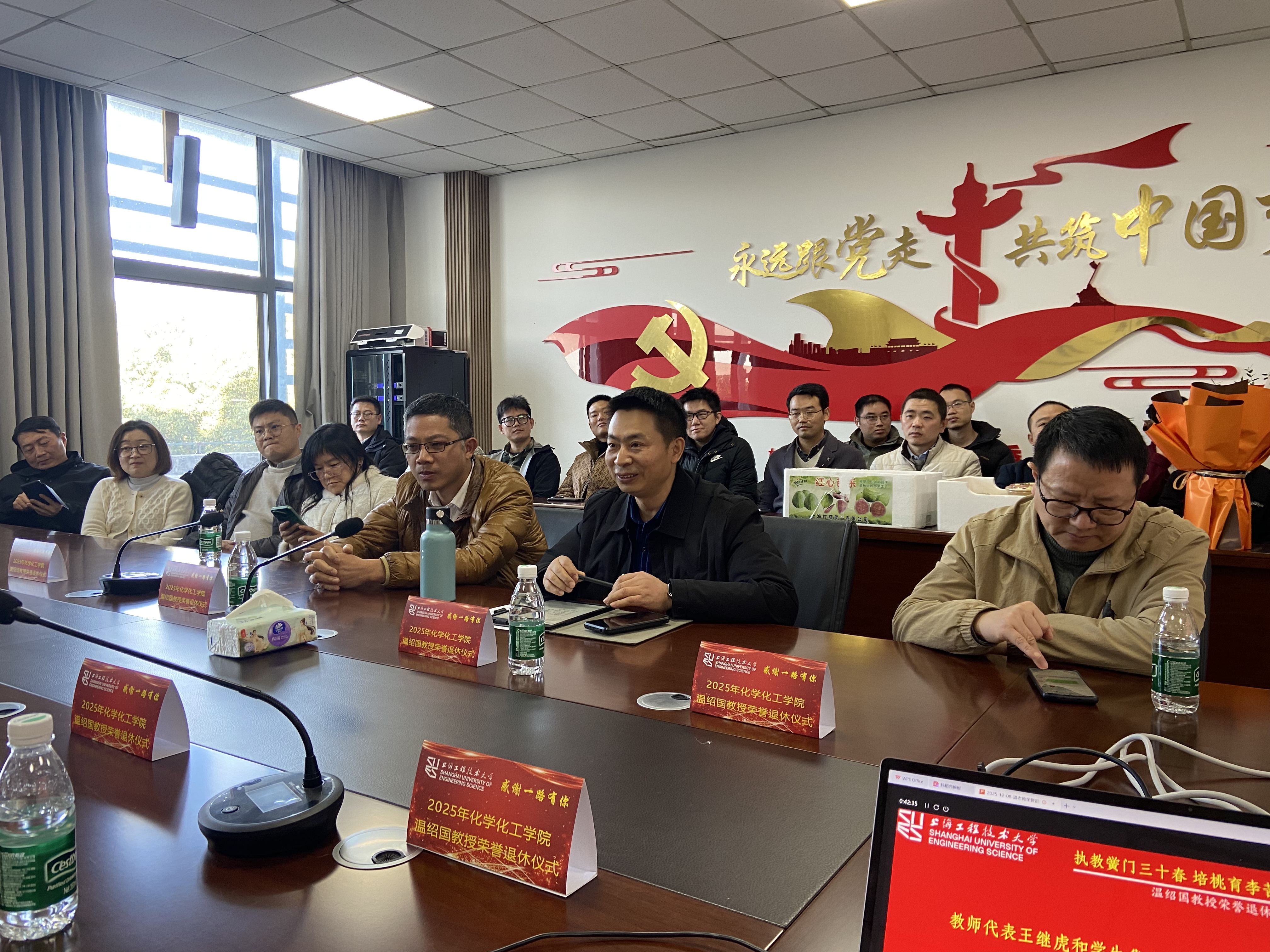 12月15日下午,化学化工学院工会在实训中心4414室举行温绍国教授荣退仪式。学院党委书记宋勤健,院长李亚、高分子系教职工代表、学生代表齐聚一堂,以庄重而温馨的仪式,向躬耕教坛三十载的温绍国教授致以崇高敬意与真诚祝福。