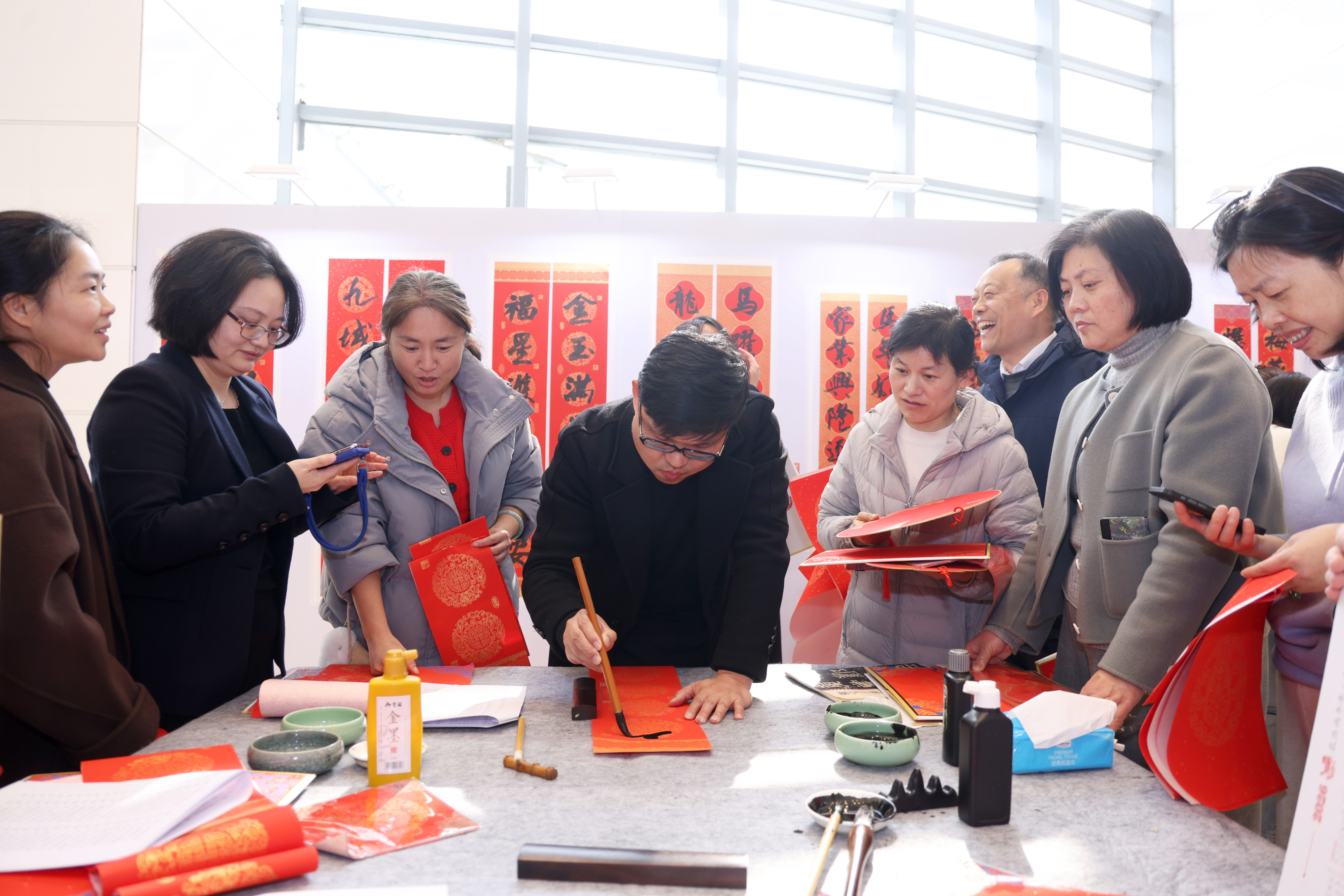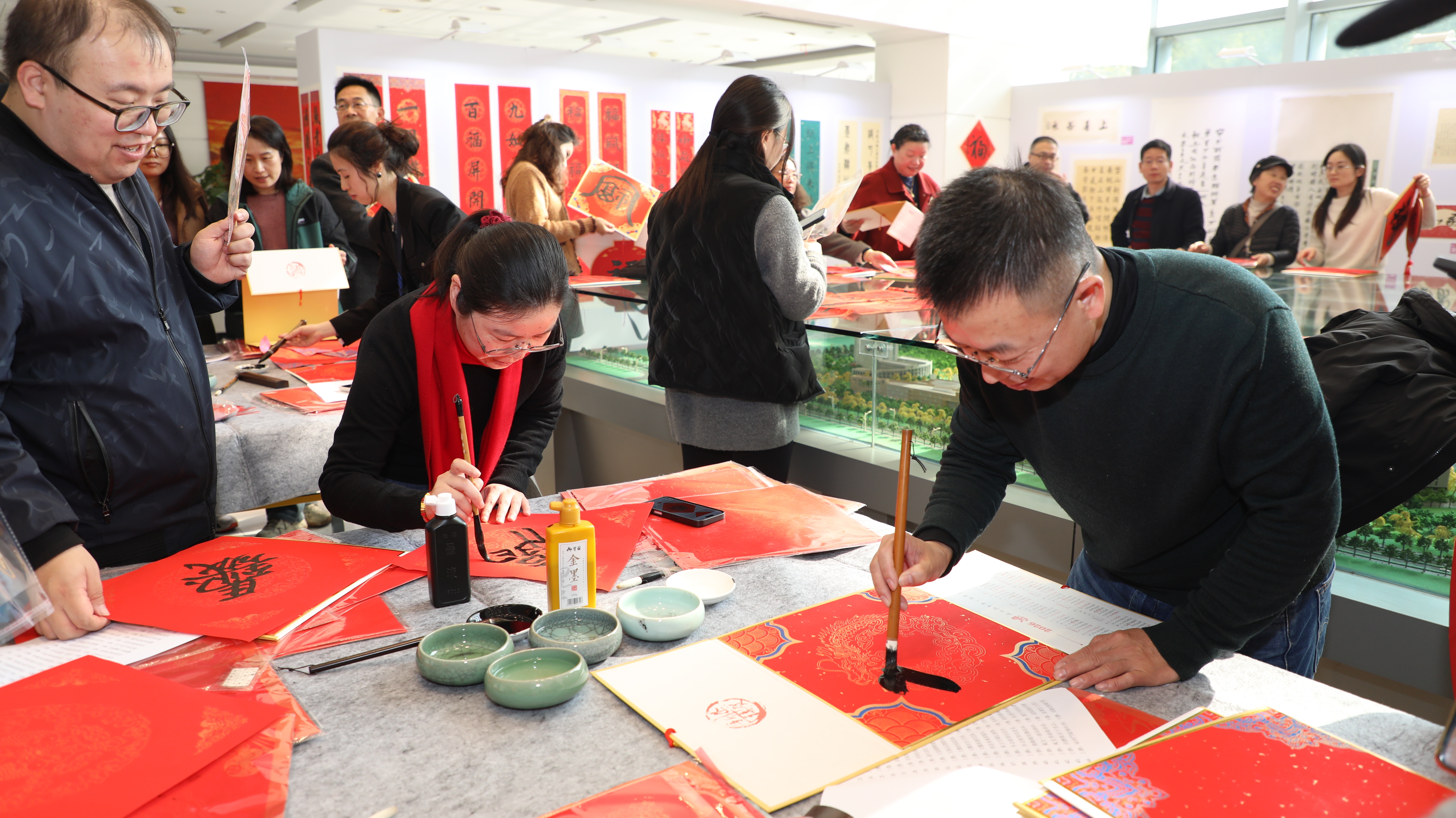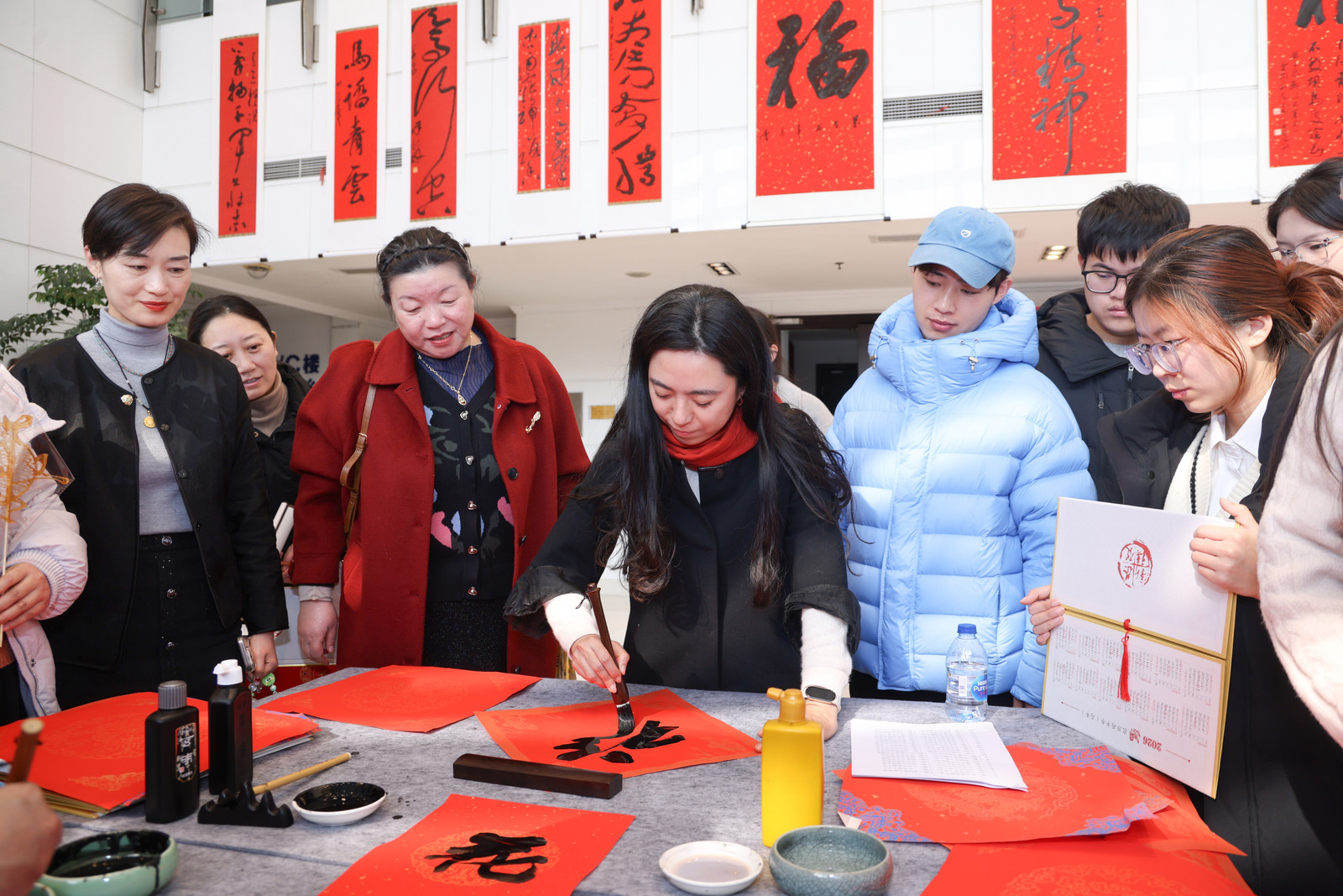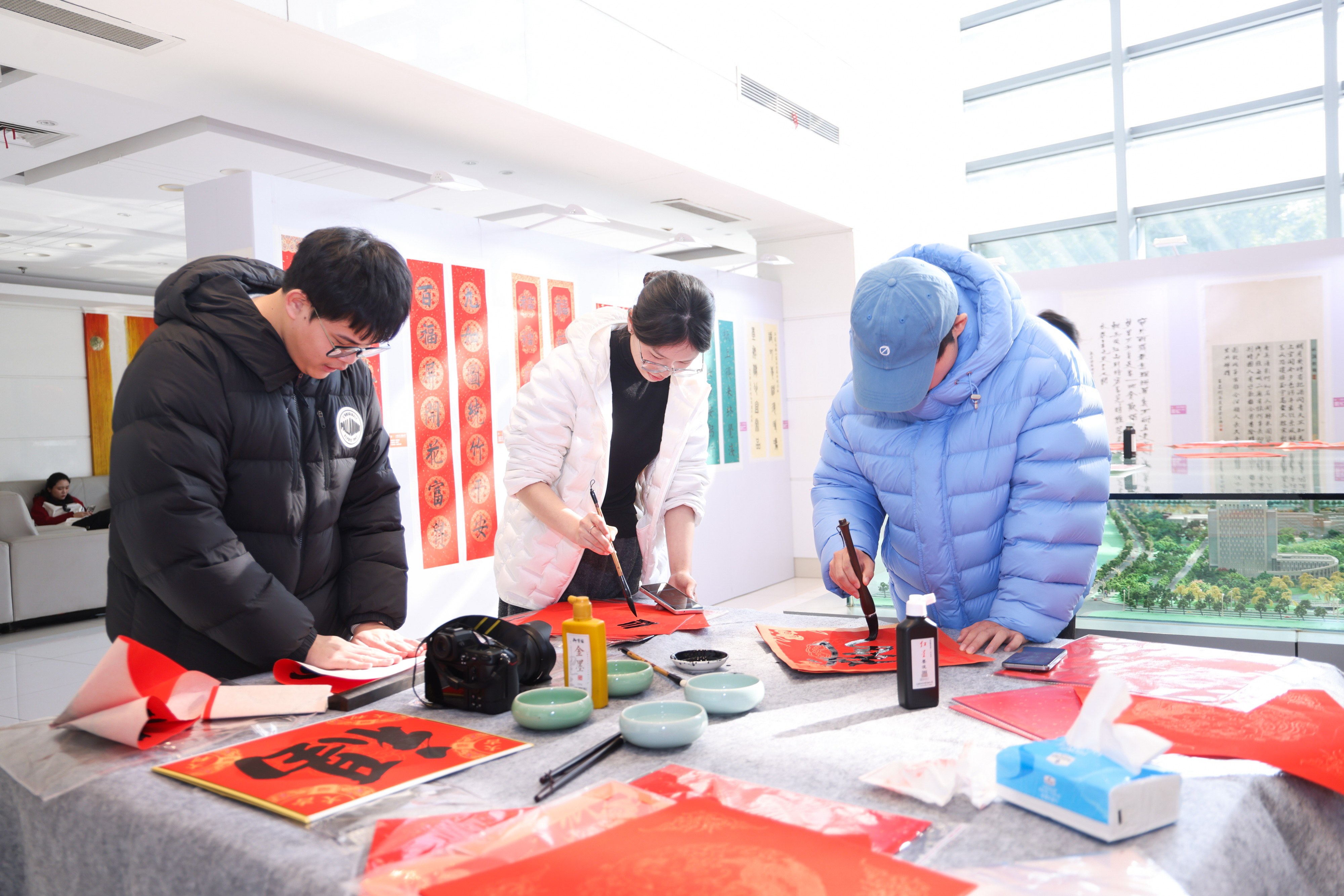 青年书法家为师生书写福字和对联
