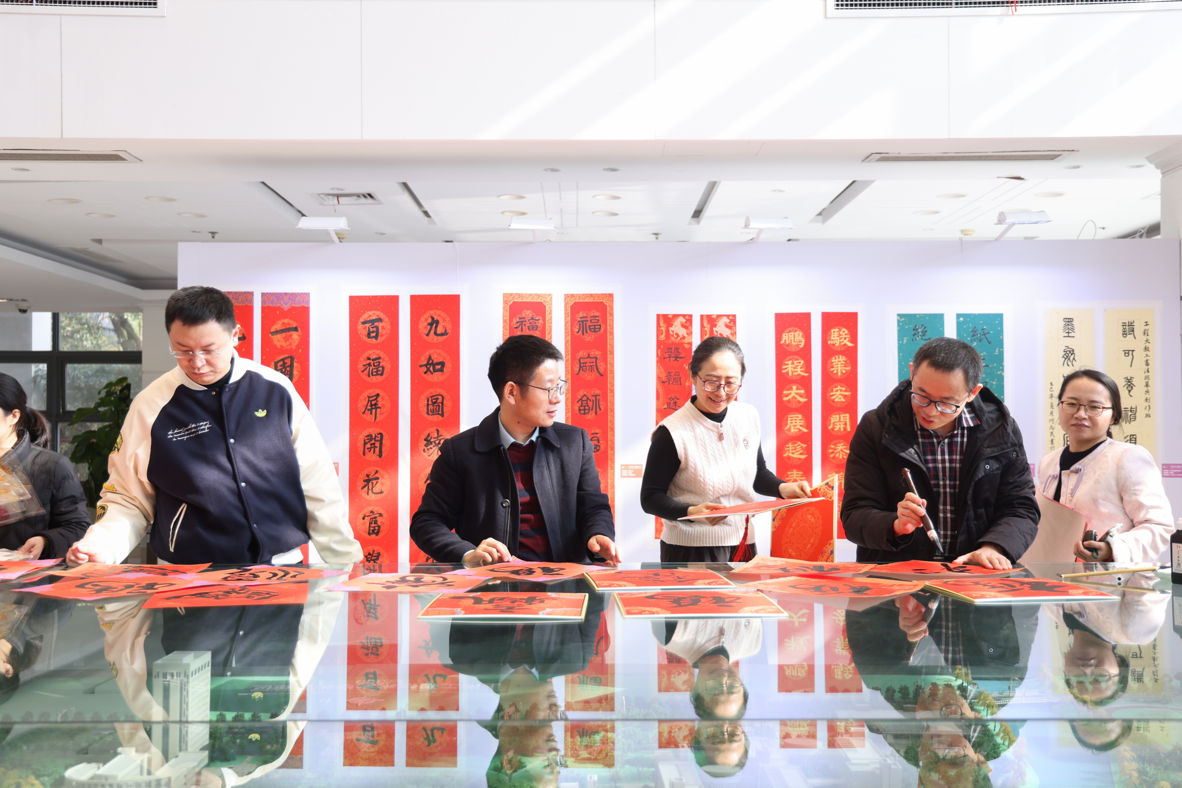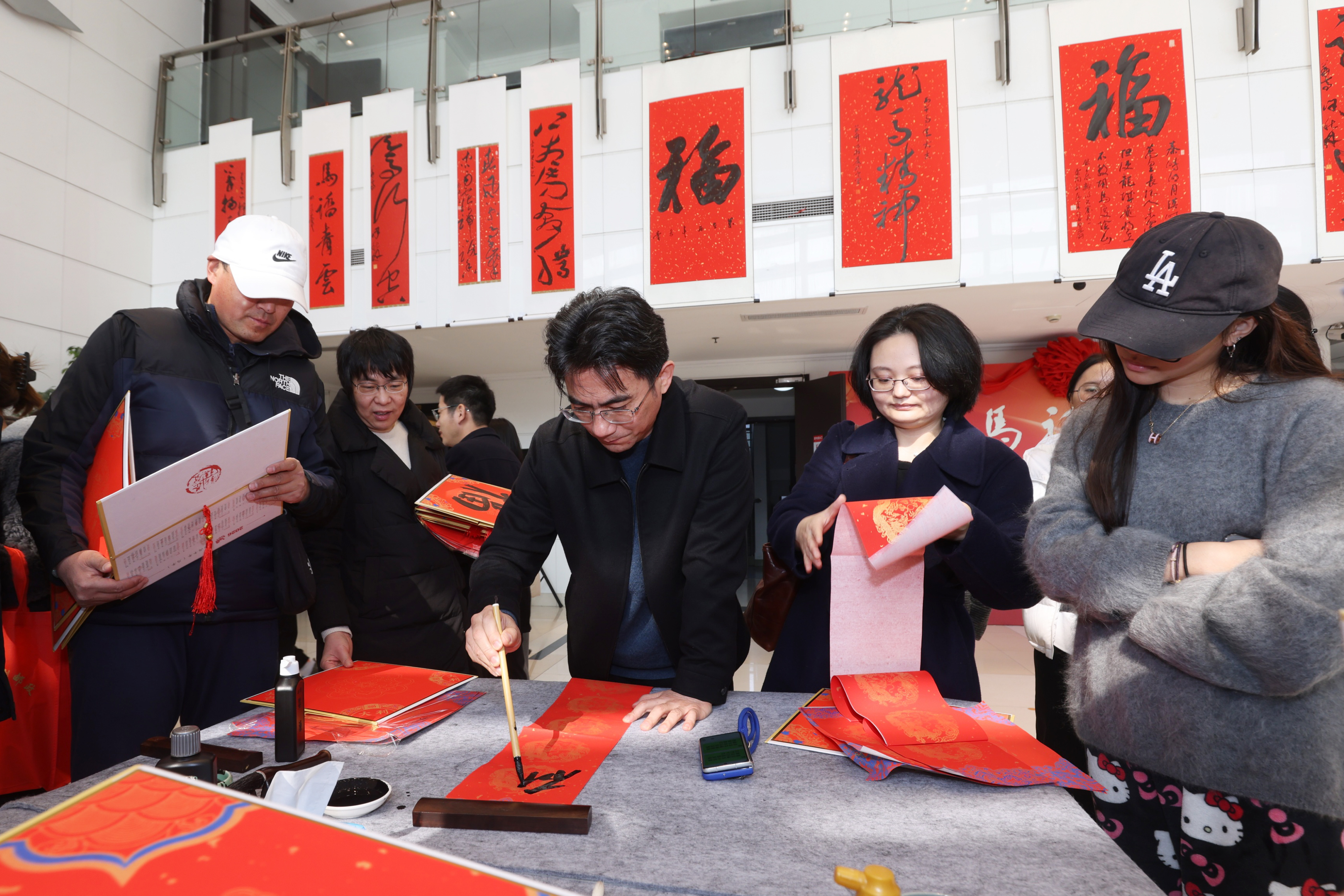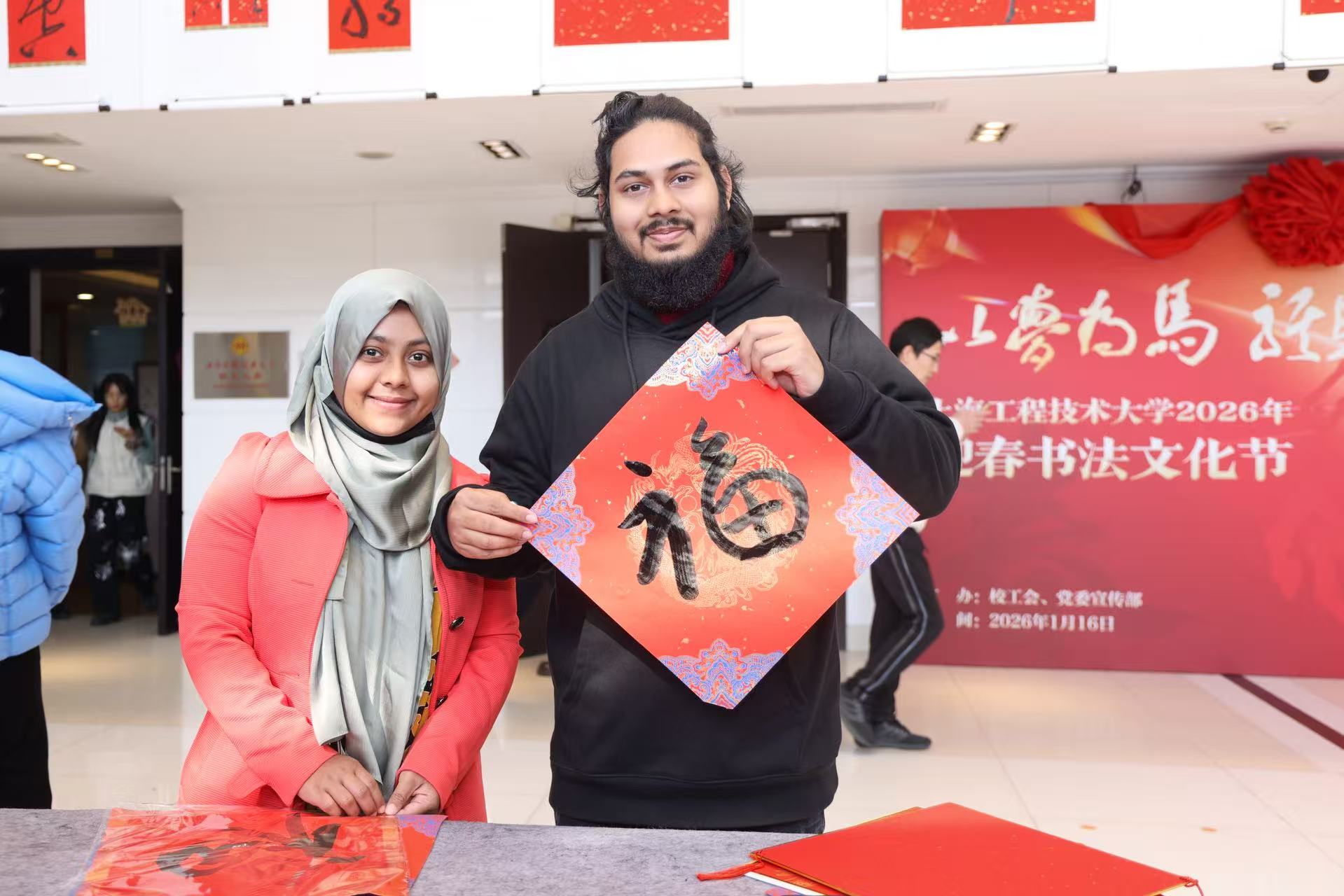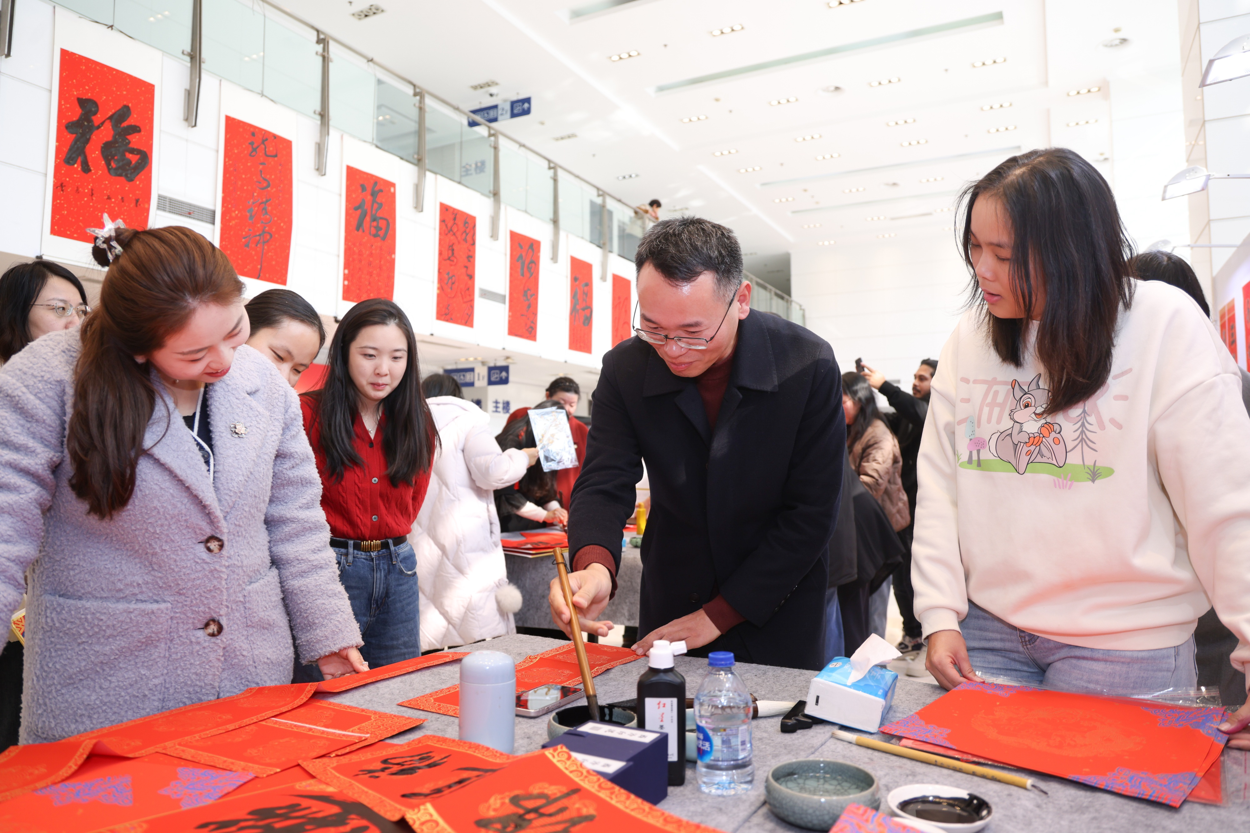青年书法家为师生书写福字和对联