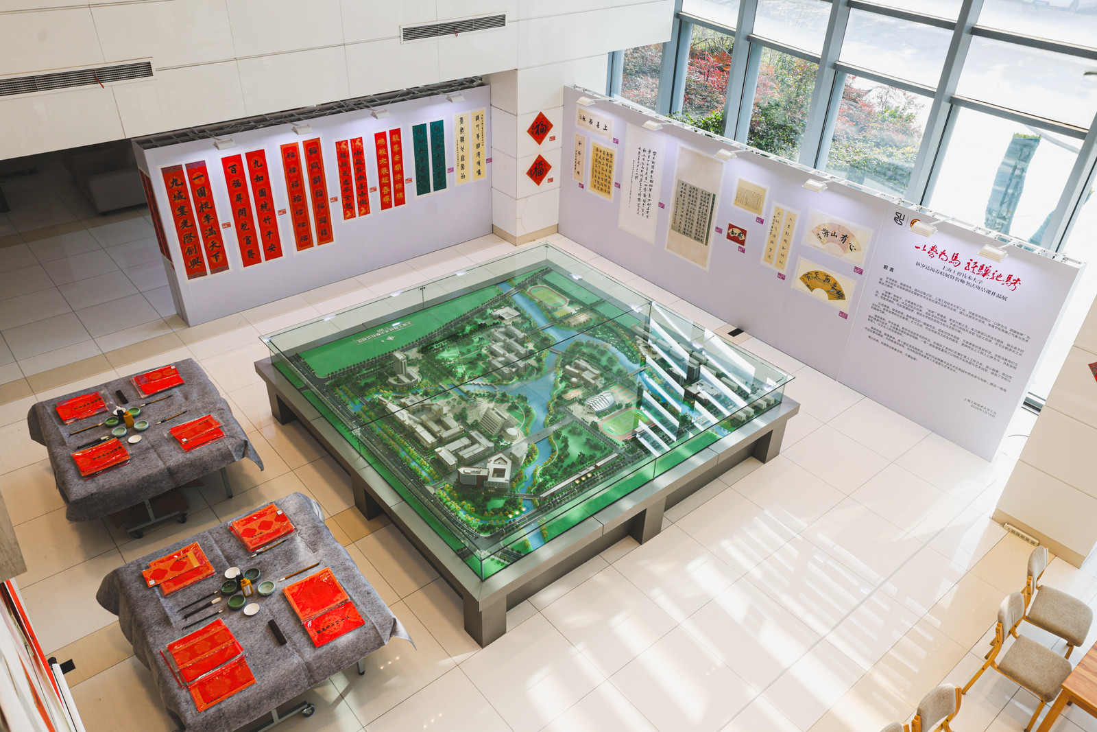 校党委书记李江与上海市书法家协会副主席宣家鑫共同为迎春书法文化节揭幕