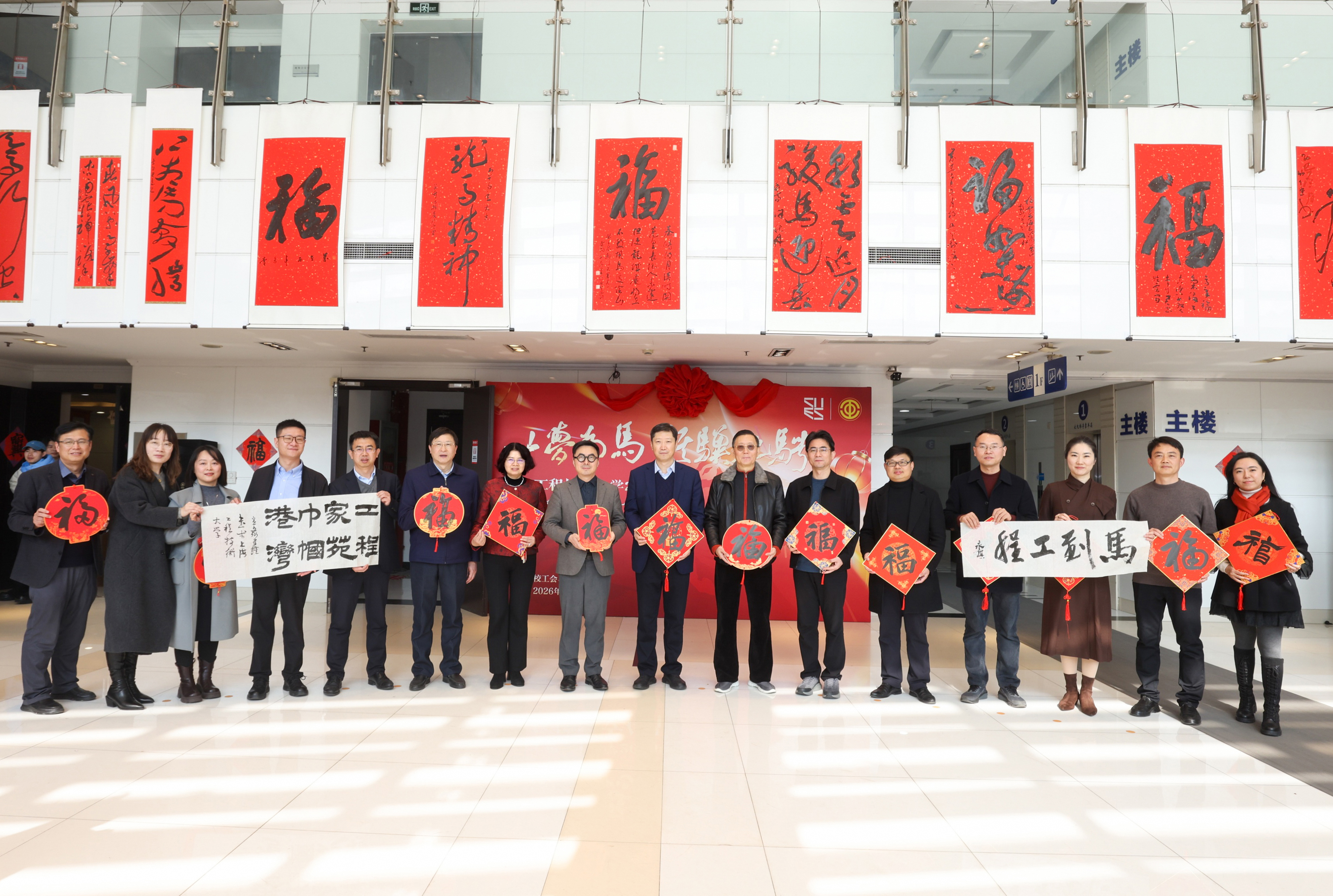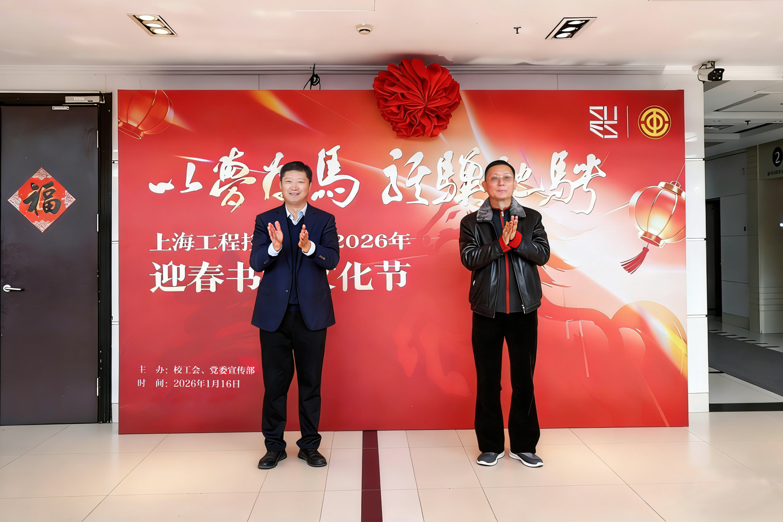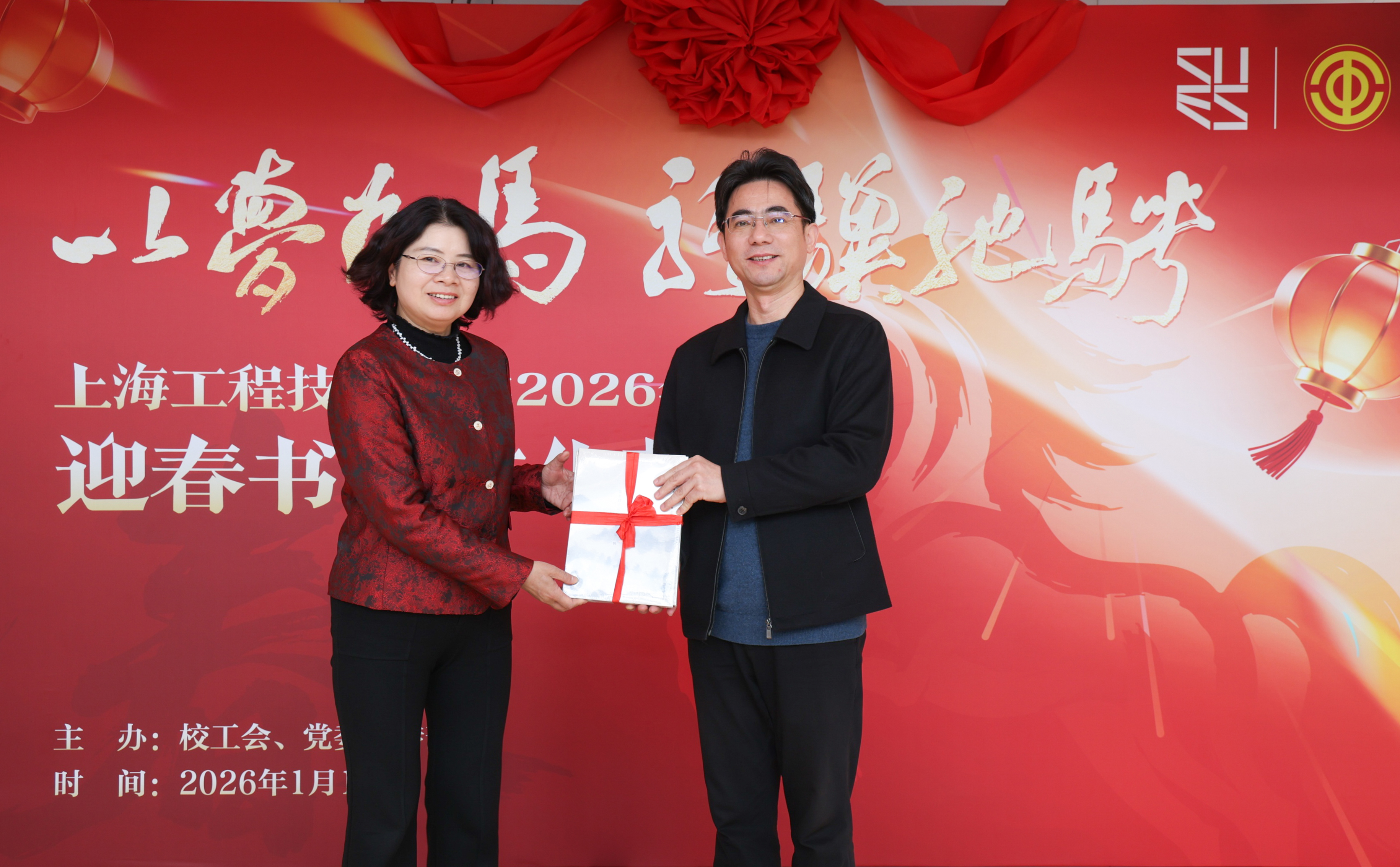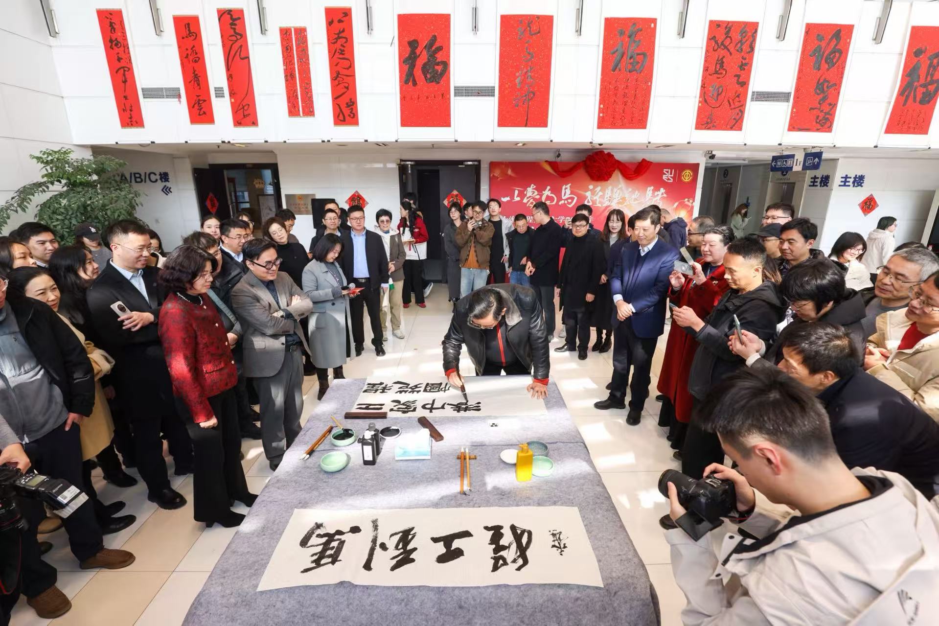 冬去春来添雅韵,笔墨飘香贺新春。1月16日中午,由校工会、党委宣传部联合主办的“以梦为马 骐骥驰骋”2026年上海工程技术大学迎春书法文化节在松江校区行政楼一楼大厅顺利举行。校党委书记李江,校长娄永琪,校党委副书记、工会主席朱晓青,校党委副书记、纪委书记孟星,上海市书法家协会、松江区书法家协会、松江新城邮政局相关领导、学校相关职能部门负责人出席活动,非物质文化遗产传承人、我校教职工以及学生书法爱好者齐聚一堂,共赴这场传统文化与校园情怀交融的文化盛宴。活动由校工会常务副主席李霞主持。