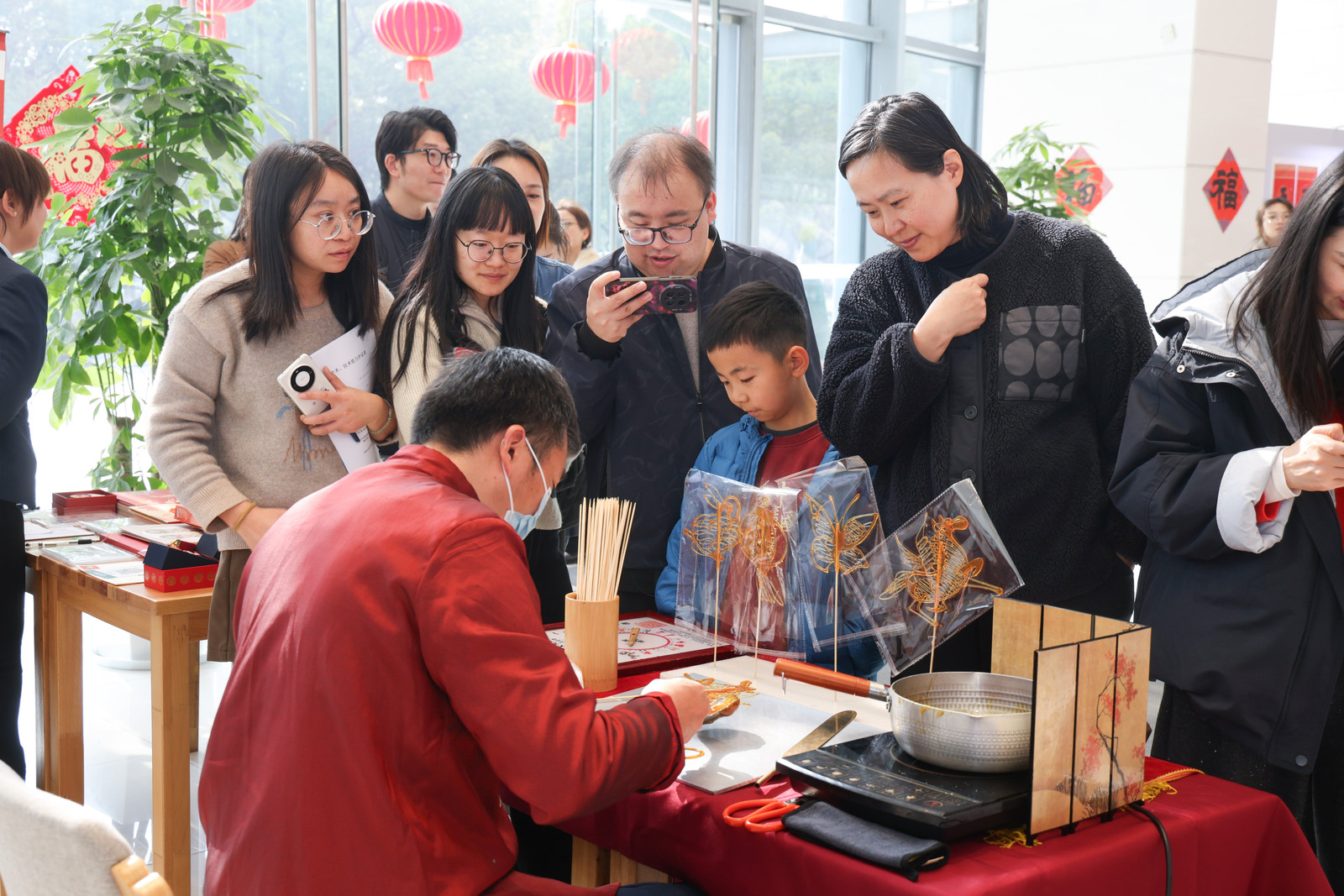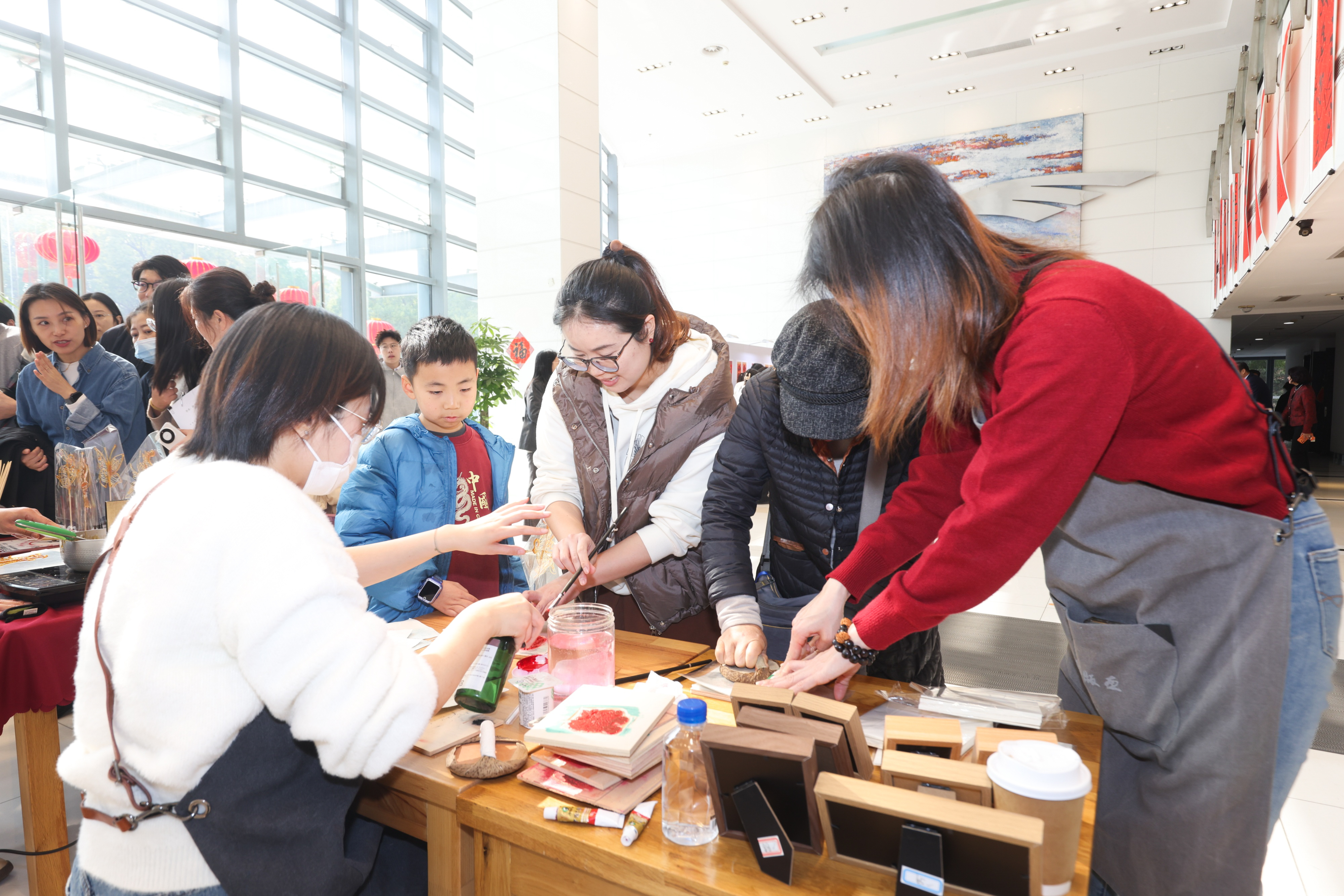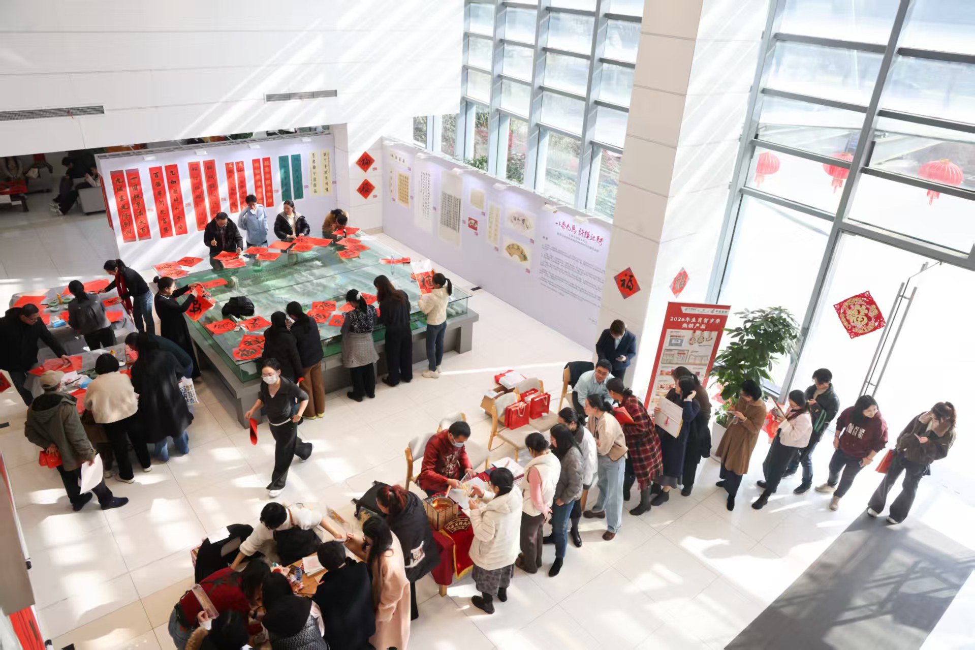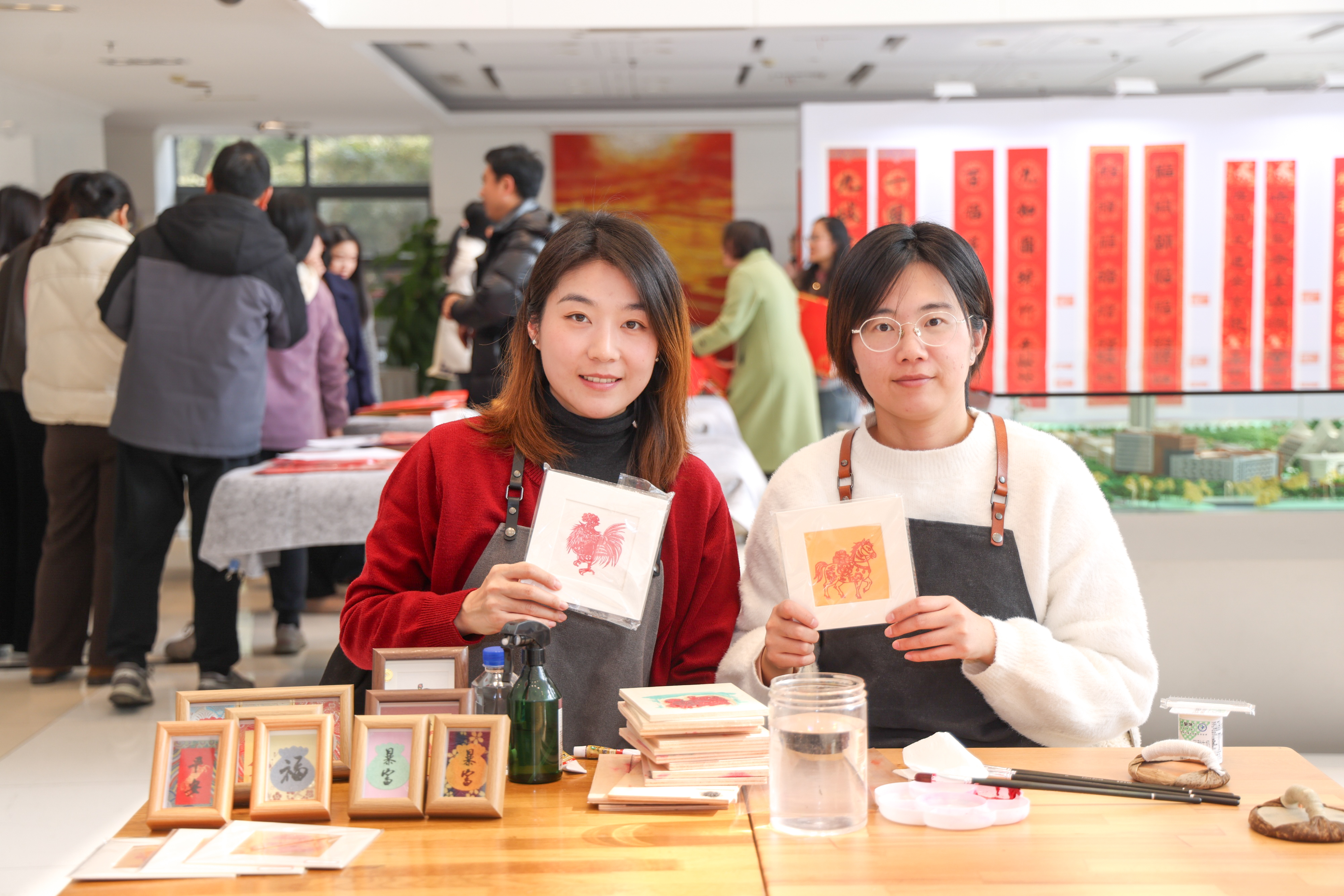 活动现场同步打造了多元文化体验矩阵:马年送福书法展、教职工书法班结课作品展集中呈现笔墨风采,马年邮票展解锁生肖文化趣味,非遗水印版画、云间糖画体验则让传统技艺触手可及。师生们共写春联福字的环节,大家提笔蘸墨、挥毫寄情,一笔一划间既饱含对新春的美好期许,也蕴藏着对美好生活的向往和对学校的热爱,活动现场墨香氤氲、暖意融融。