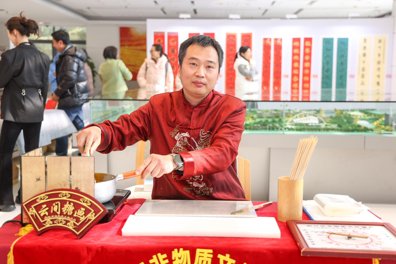松江区书法家协会主席彭烨峰现场书写新春送福